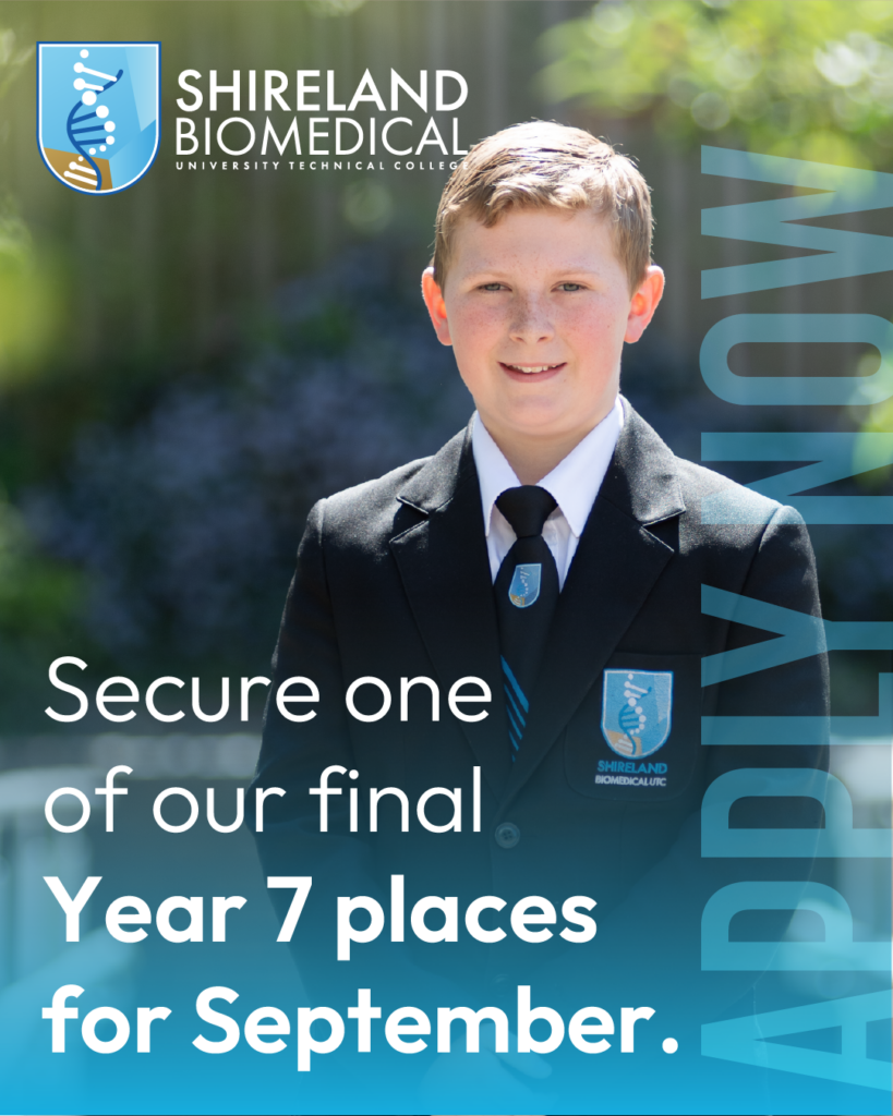 Parents must complete the online registration form via their Local Authority by 31 October 2025. Ensure Shireland Biomedical UTC is listed as one of your preferences.