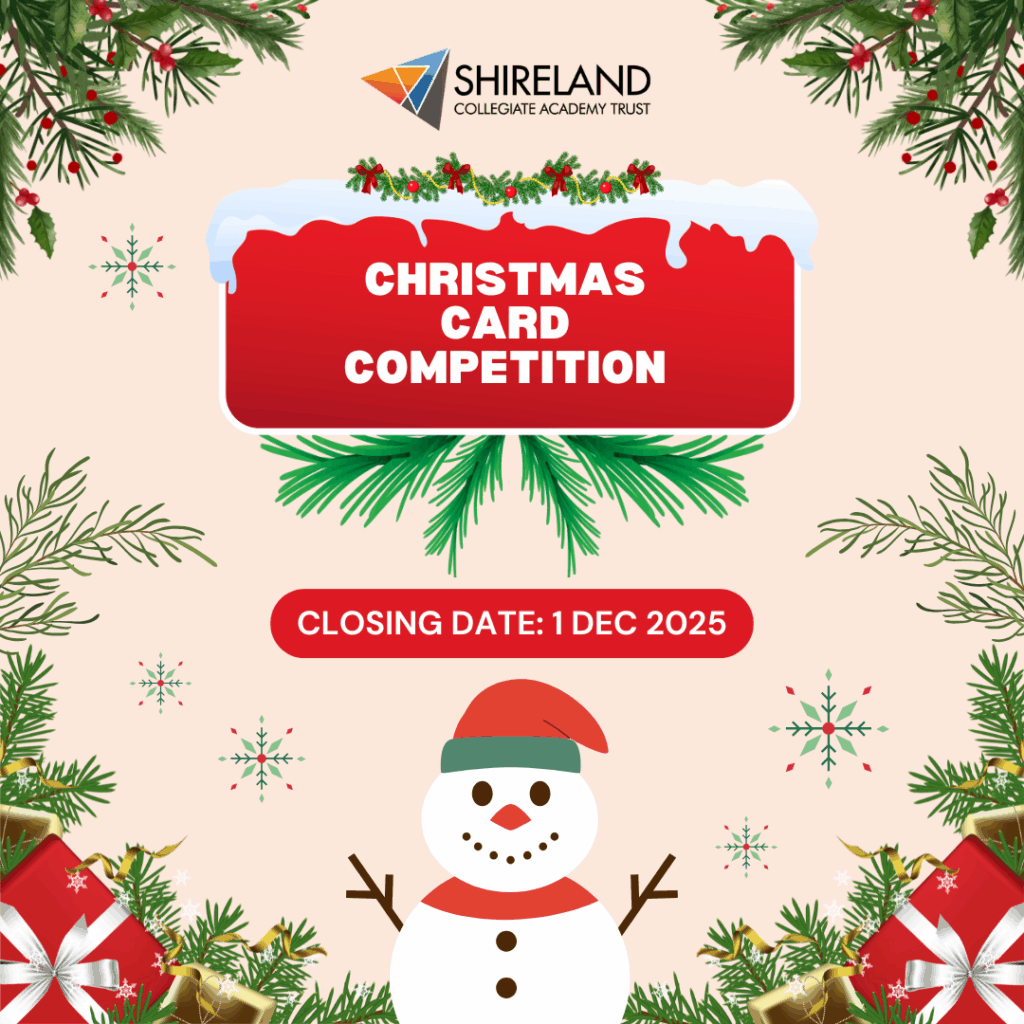 Shireland Collegiate Academy Trust has launched its annual Trust-wide Christmas Card Competition, inviting students from across its academies to showcase their creative flair once again. This follows the success of last year’s competition, where the winning students received printed copies of their designs to share with family and friends, a tradition which is set to continue this year. Students are encouraged to create their designs on white A4 paper, using any medium – from painting, drawing, and computer graphics to photography – to capture the spirit of Christmas. Submissions must be the students’ original artwork and not generated using AI software. There will be one Primary and one Secondary winner, each receiving and art set and printed